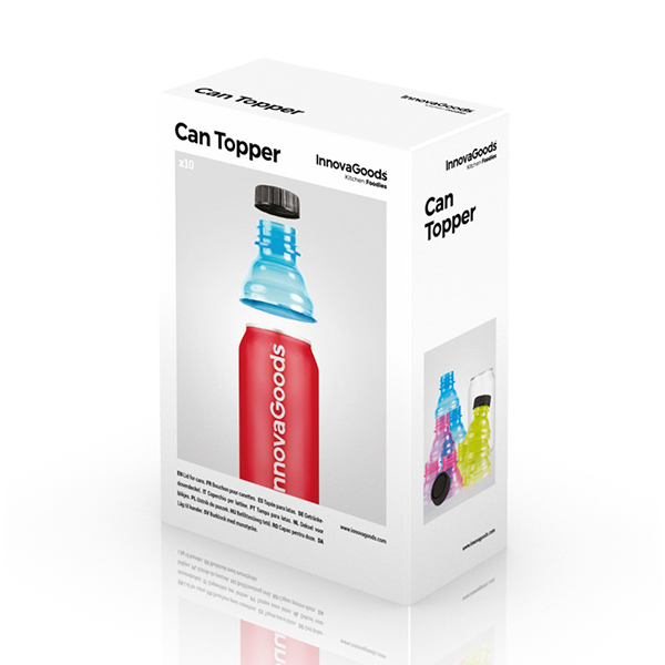 Förvandla dina burkar till bekväma flaskor snabbt och enkelt med lock till läskburk InnovaGoods Kitchen Foodies (10 st)! Sätt helt enkelt locket på burkens topp och justera mot öppningen. Genom att undvika direktkontakt med burken slipper man eventuellt smuts och bakterier som finns på burkens yta. Perfekt för kolsyrade drycker då de inte blir avslagna och håller sig fräscha och härligt bubblande längre. En häftig och nyttig uppfinning som passar alla typer av burkar!