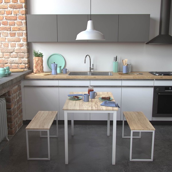 Om du vill sätta en originell prägel på ditt hem, gör så med Set med bord och bänk White Trä.