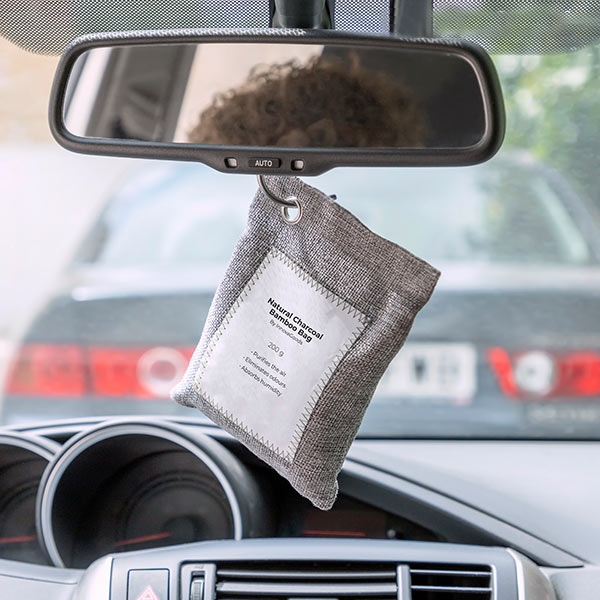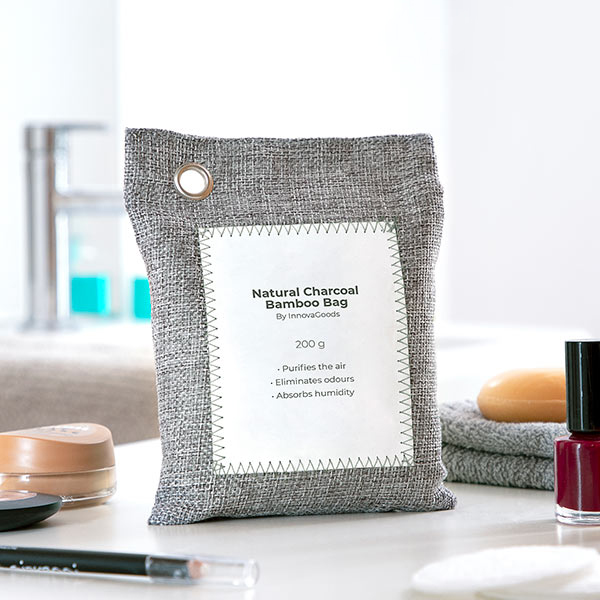 Ett set med 2 aktiva bambukolpåsar av olika vikt och storlek som på ett naturligt sätt renar luften och absorberar fukt och dålig lukt utan skadliga kemikalier och föroreningar. Två upphängningskrokar i metall medföljer, vilket gör dem enkla att placera var du vill. De är återanvändbara, håller länge (2 år) och kan lätt återaktiveras genom att exponeras för sol en gång i månaden i ca. 3 till 5 timmar. De återfår på så vis sina renande egenskaper. När påsens livslängd har löpt ut kan dess innehåll även användas som växtgödsel. Ett mer effektivt, miljövänligt och naturligt alternativ för att njuta av en fräsch, ren, hälsosam och mer andningsbar miljö. Perfekt för garderober, skoställ, lådor, badrum, kök, bilar etc.